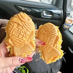 出勤しました〜❣️ みんな遊びに来てね😊 夜ご飯 キャベツの入ってる たい焼き🐟 ( ˙˘˙)੭バッバイ