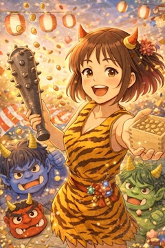 恵方巻き食べずに終わってしまった2月3日、、、🥲それだけが心残りに感じつつ、、、本日もお休みなさいませ✨チャッピーにお任せ節分イラストもう1枚謎にキラキライラスト🥹