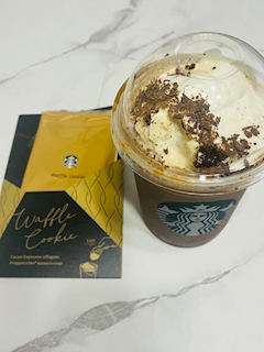 昨日早速飲んだわ🍫☕️ 新作〜❤️ ワッフルクッキーついてきた🧇 さむっ