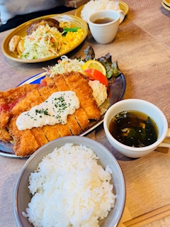 🩵🩵🩵 🤍蓮🤍 この間ランチしたんだけど ジャンボチキンカツ☺️ 食べれんて 笑 めちゃ美味しかったけど😋