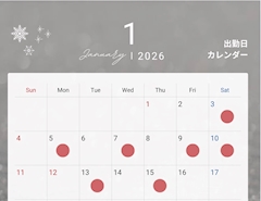 ↑ 出勤日カレンダー作ってみました👏🏻まだ1/15日までの分だけですが💦 🔴が出勤日です✨ 予定が合えばぜひお話ししましょう🌷