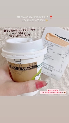 よくスタバ行くこと多くて、仲良くなったPTRさん達に、いつもドリンク選んでもらってる💓 カスタムしてくれる☕️🪄 なんでこれが始まったかというと、 スタバの副店長と仲良しになって、 選んでもらってたからでした!💓 副店長が異動しちゃって、 バイトのPTRさん達が引き継いでくれてる🍀🤍