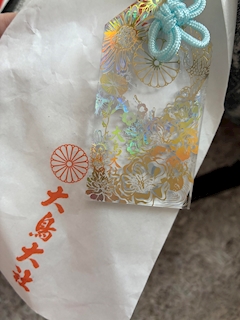 素敵なお守りいただきました 透明の虹色に光るお守り。 先を見通す という意味があるらしいです✨